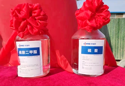 1月23日至29日,歷時7天,由公司負責設計的山東凱瑞英材料科技有限公司羥脲磺胺類醫藥中間體產業鏈項目硫酸二甲酯裝置及公輔配套設施試車一次開車成功,打通全流程,產出合格產品,投產后產出主產品硫酸二甲酯產品指標優于國標一等品,副產品98%硫酸。
