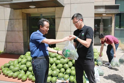 公司黨委副書記、工會主席、職工董事景建民將西瓜發到員工的手里,并囑咐大家在堅守崗位的同時,注意勞逸結合,防暑降溫,增強自我保護意識。