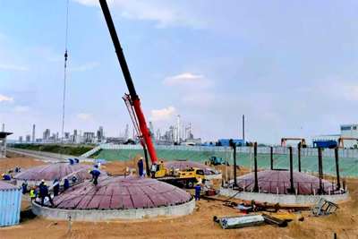 7月14日,由公司承建的榆林煉油廠(chǎng)進(jìn)口原油鐵路專(zhuān)用線(xiàn)接卸及配套設(shè)施改造項(xiàng)目4臺(tái)渣油罐組基礎(chǔ)完成基礎(chǔ)工序交接驗(yàn)收程序,4臺(tái)原油罐基礎(chǔ)先行于7月11日完成基礎(chǔ)工序交接,自此,該項(xiàng)目?jī)?chǔ)罐全面進(jìn)入安裝階段,并且8臺(tái)儲(chǔ)罐壁板、防腐油漆材料已全部到貨,壁板防腐完成,全面具備安裝條件。