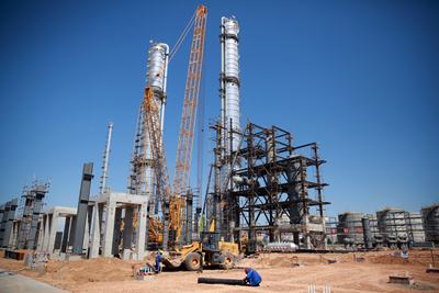 進入伏天的榆神能化50萬噸/年煤基乙醇項目建設(shè)現(xiàn)場,一派大干快上的忙碌景象,現(xiàn)場超過2000名建設(shè)人員奮戰(zhàn)在施工一線。